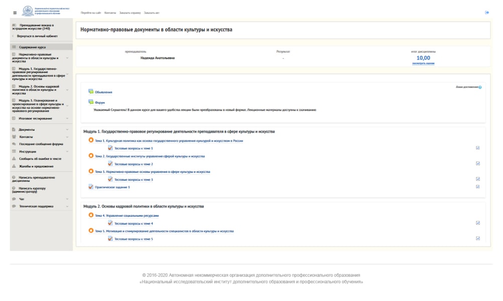 1. Текущий контроль успеваемости после каждой темы проходит в форме тестирований. Эти тесты необходимы для закрепления пройденного материала при переходе к следующей теме.