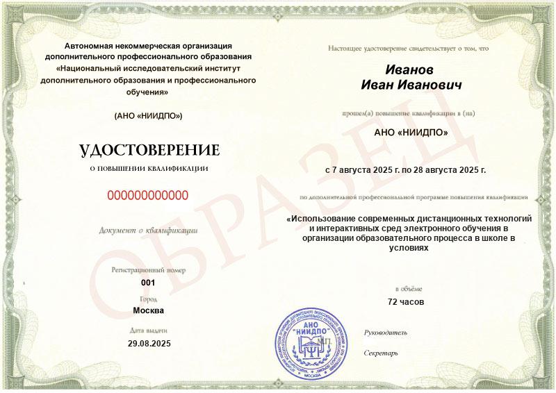 Да, документы оформляются на бланках с защитой от подделок, заполняются на русском языке, в них ставится печать АНО «НИИДПО».