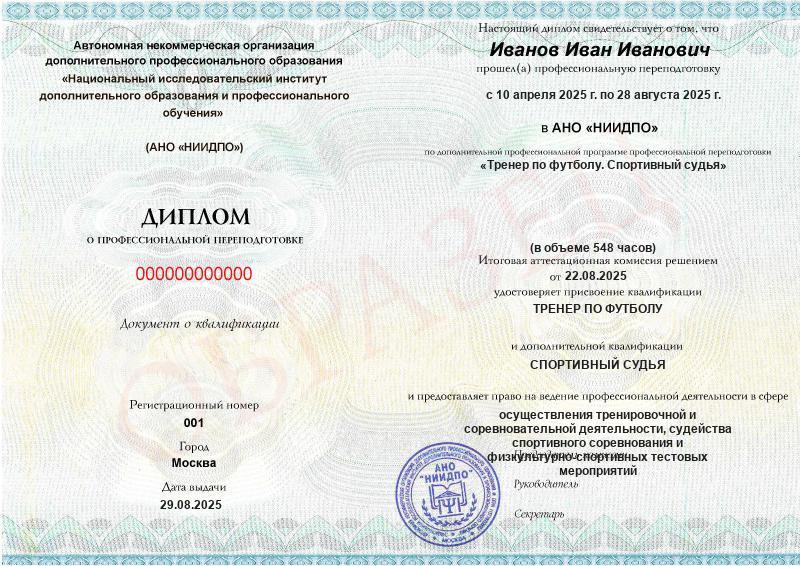 Обзор программы профессиональной переподготовки «Тренер по футболу. Спортивный судья» с присвоением квалификации «Тренер по футболу» с дополнительной квалификацией «Спортивный судья»