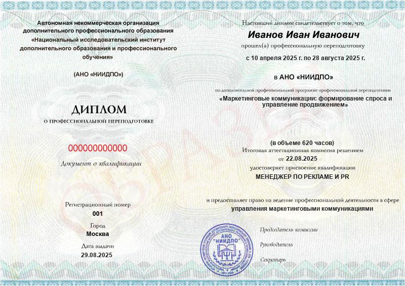 Да, документы оформляются на бланках с защитой от подделок, заполняются на русском языке, в них ставится печать АНО «НИИДПО».