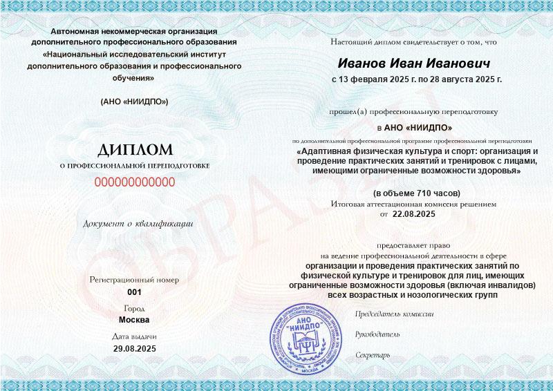 Адаптивная физическая культура и спорт: организация и проведение практических занятий и тренировок с лицами, имеющими ограниченные возможности здоровья (710ч)