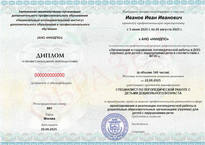 Студент, желающий поступить в АНО «НИИДПО», должен предоставить справку из образовательной организации. Независимо от срока окончания обучения по программе дополнительного образования, диплом о профпереподготовке выдаётся только после предъявления документа о получении среднего профессионального или высшего образования.