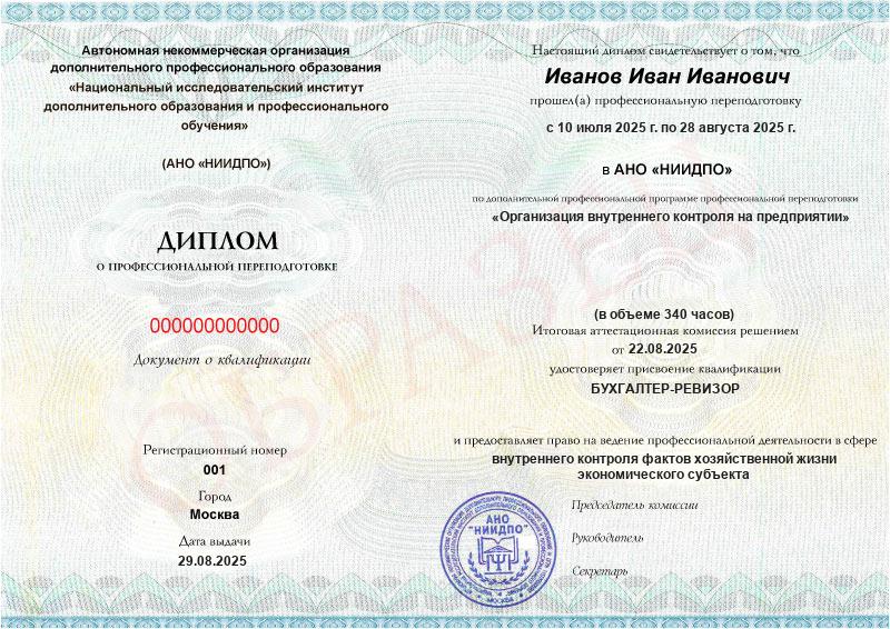 Учебный план программы профессиональной переподготовки «Организация внутреннего контроля на предприятии» с присвоением квалификации «Бухгалтер-ревизор»