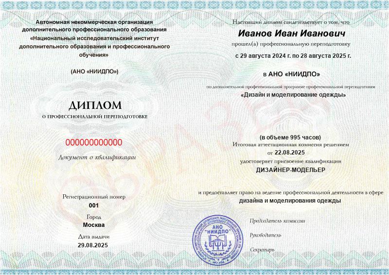 Учебный план программы профессиональной переподготовки «Дизайн и моделирование одежды» с присвоением квалификации «Дизайнер-модельер»