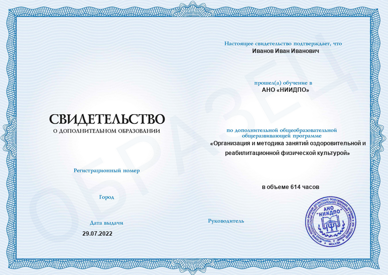 Организация и методика занятий оздоровительной и реабилитационной физической культурой (614ч)