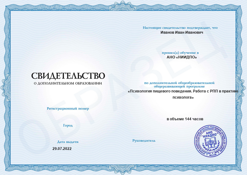 Психология пищевого поведения. Работа с РПП в практике психолога (144ч)