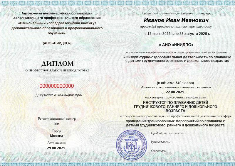 Обзор программы профессиональной переподготовки «Физкультурно-оздоровительная деятельность по плаванию с детьми грудничкового, раннего и дошкольного возраста» с присвоением квалификации «Инструктор по плаванию детей грудничкового, раннего и дошкольного возраста»