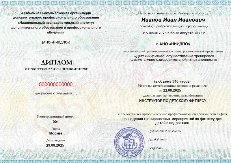 Детский фитнес: осуществление тренировок физкультурно-оздоровительной направленности (340ч)