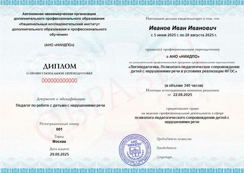 Студент, желающий поступить в АНО «НИИДПО», должен предоставить справку из образовательной организации. Независимо от срока окончания обучения по программе дополнительного образования, диплом о профпереподготовке выдаётся только после предъявления документа о получении среднего профессионального или высшего образования.