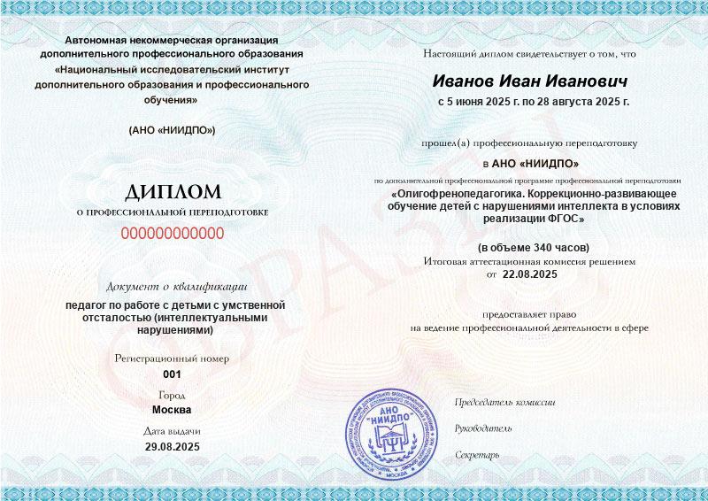 Да, документы оформляются на бланках с защитой от подделок, заполняются на русском языке, в них ставится печать АНО «НИИДПО».