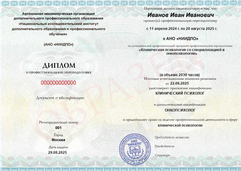 Да, документы оформляются на бланках с защитой от подделок, заполняются на русском языке, в них ставится печать АНО «НИИДПО».