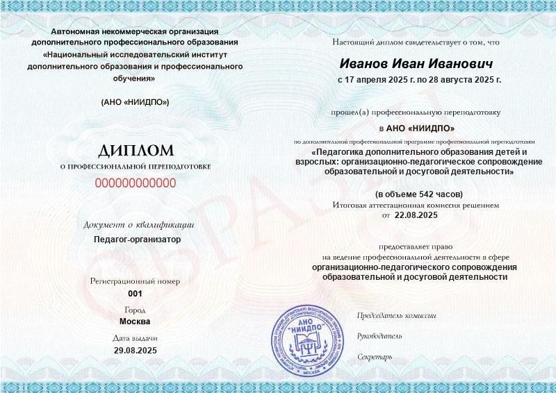 Студент, желающий поступить в АНО «НИИДПО», должен предоставить справку из образовательной организации. Независимо от срока окончания обучения по программе дополнительного образования, диплом о профпереподготовке выдаётся только после предъявления документа о получении среднего профессионального или высшего образования.