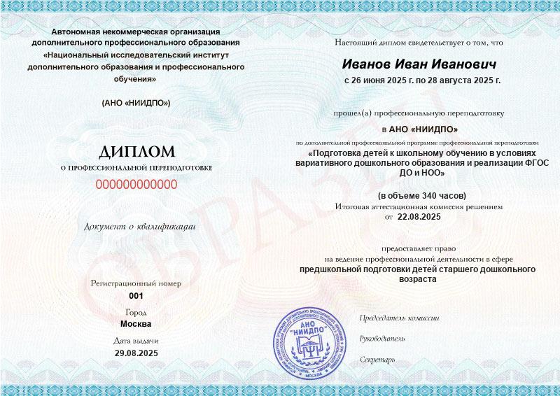 Студент, желающий поступить в АНО «НИИДПО», должен предоставить справку из образовательной организации. Независимо от срока окончания обучения по программе дополнительного образования, диплом о профпереподготовке выдаётся только после предъявления документа о получении среднего профессионального или высшего образования.