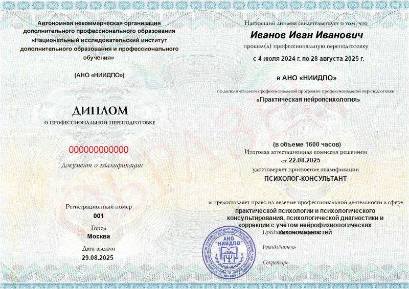 Пройдите программу профессиональной переподготовки и получите квалификацию психолога-консультанта с подготовкой в области нейропсихологии