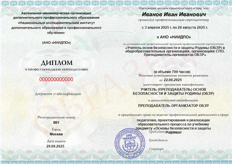 Обзор программы профессиональной переподготовки «Учитель основ безопасности и защиты Родины (ОБЗР) в общеобразовательных организациях, организациях СПО. Преподаватель-организатор ОБЗР» с присвоением квалификации «Учитель (преподаватель) основ безопасности и защиты родины (ОБЗР)» с дополнительной квалификацией «Преподаватель-организатор ОБЗР»