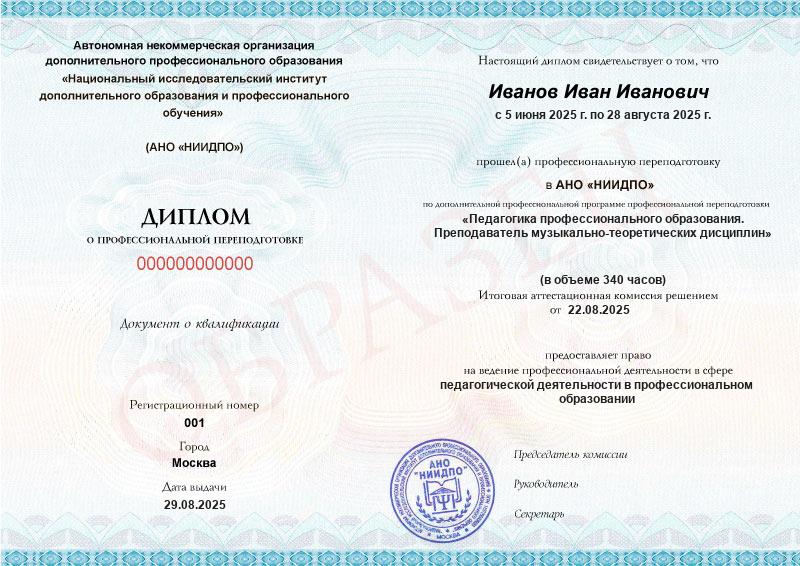 Педагогика профессионального образования. Преподаватель музыкально-теоретических дисциплин (340ч)