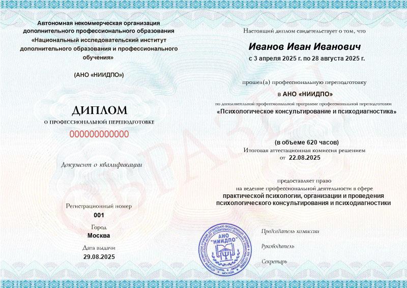 Отзыв для НИИДПО (Национального исследовательского института дополнительного образования и профессионального обучения). Учился на специальность психологическое консультирование и психодиагностика. Длилось обучение 620 часов. Узнал про НИИДПО через рекламу из интернета. Возникло желание учиться, из-за доступной цены и из-за добрых отзывов. Проверялись домашние задания в течение суток. Достиг результатов. Получил переквалификацию в области психологического консультирования и психодиагностики. Преимущества дистанционного обучения. Возможность приостановить учёбу и вернуться к обучению в удобное время. Порекомендую НИИДПО своим коллегам и знакомым, потому что удобная платформа. Спасибо за внимание. Искренни примите пожелания успехов в жизни.