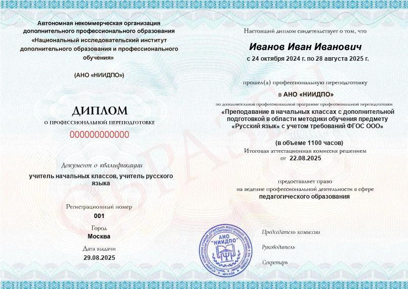 Да, документы оформляются на бланках с защитой от подделок, заполняются на русском языке, в них ставится печать АНО «НИИДПО».