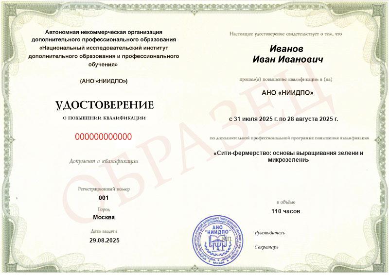 Учебный план программы повышения квалификации «Сити-фермерство: основы выращивания зелени и микрозелени»