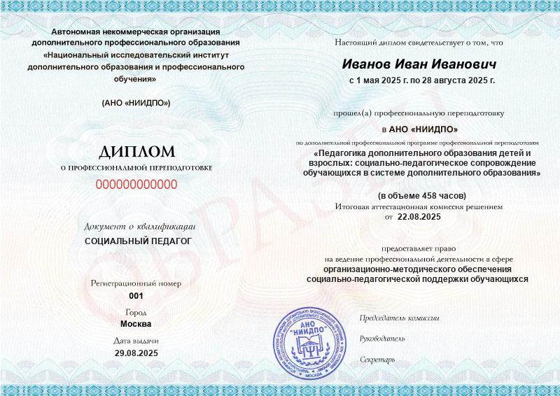 Студент, желающий поступить в АНО «НИИДПО», должен предоставить справку из образовательной организации. Независимо от срока окончания обучения по программе дополнительного образования, диплом о профпереподготовке выдаётся только после предъявления документа о получении среднего профессионального или высшего образования.