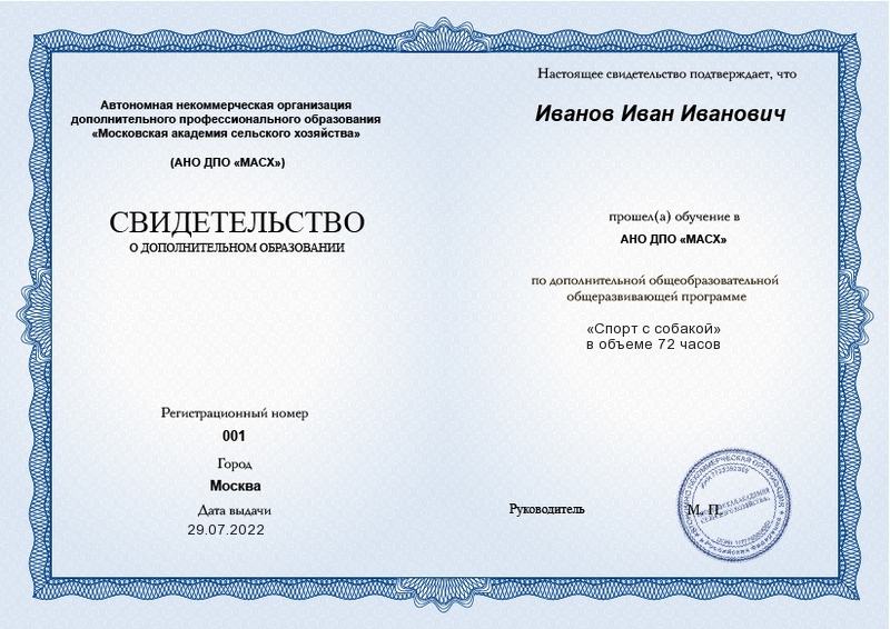 Свидетельство о дополнительном образовании. Вышлем его на вашу электронную почту в течение 14 рабочих дней после окончания обучения.