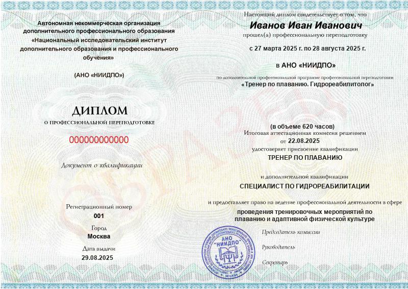Обзор программы профессиональной переподготовки «Тренер по плаванию. Гидрореабилитолог» с присвоением квалификации «Тренер по плаванию» с дополнительной квалификацией «Специалист по гидрореабилитации»