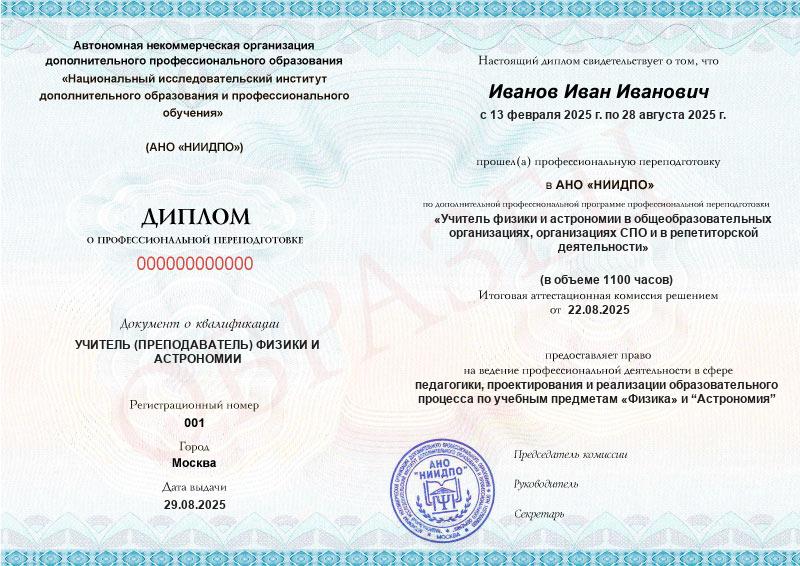 Учитель физики и астрономии в общеобразовательных организациях, организациях СПО и в репетиторской деятельности (1100ч)