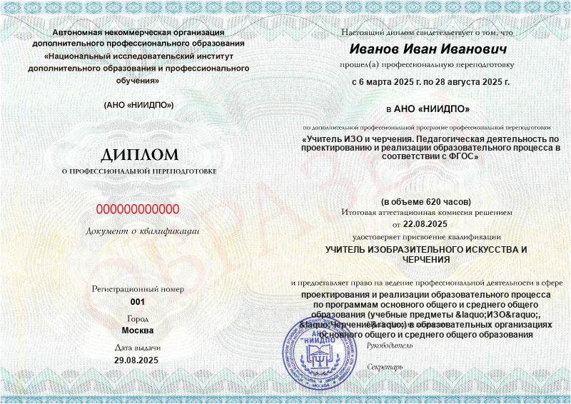 Учитель ИЗО и черчения. Педагогическая деятельность по проектированию и реализации образовательного процесса в соответствии с ФГОС (620ч)