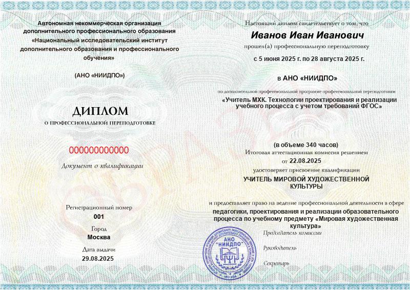 Студент, желающий поступить в АНО «НИИДПО», должен предоставить справку из образовательной организации. Независимо от срока окончания обучения по программе дополнительного образования, диплом о профпереподготовке выдаётся только после предъявления документа о получении среднего профессионального или высшего образования.