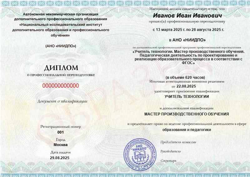 Да, документы оформляются на бланках с защитой от подделок, заполняются на русском языке, в них ставится печать АНО «НИИДПО».