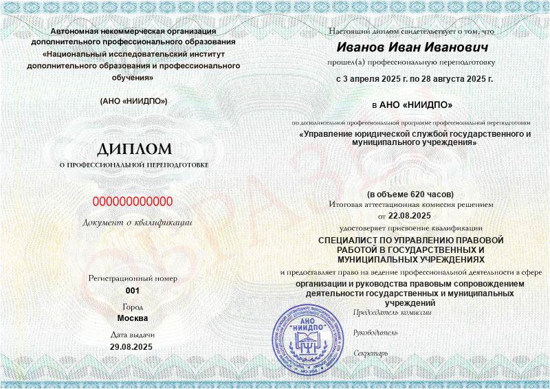 Да, документы оформляются на бланках с защитой от подделок, заполняются на русском языке, в них ставится печать АНО «НИИДПО».